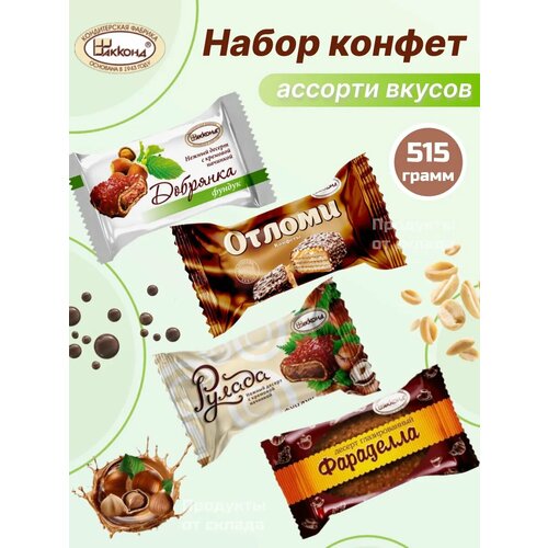 Конфеты Акконд "Добрянка", "Отломи", "Рулада", "Фараделла", ассорти, 4 вкуса, 515г