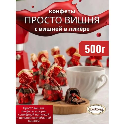 Конфеты Акконд "Просто вишня", шоколадные, с вишней, ликёром, какао, 500 грамм