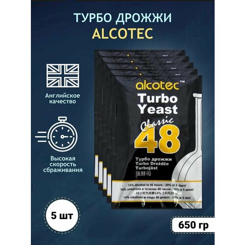 Дрожжи спиртовые ALCOTEC 48 Pure Turbo / Алкотек 48 Пьюр Турбо, 5 шт.