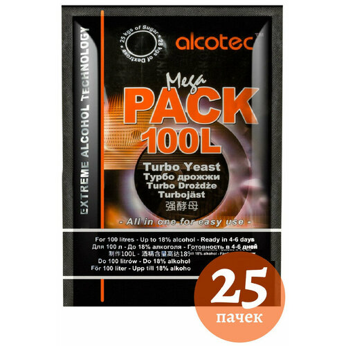 Дрожжи спиртовые Alcotec MegaPack 100L Turbo, 25 шт. 9000 гр.