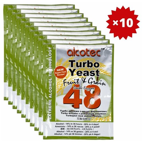 Дрожжи спиртовые Alcotec Fruit & Grain 48 Turbo для фруктовых и зерновых браг, 143 г, 10 шт.