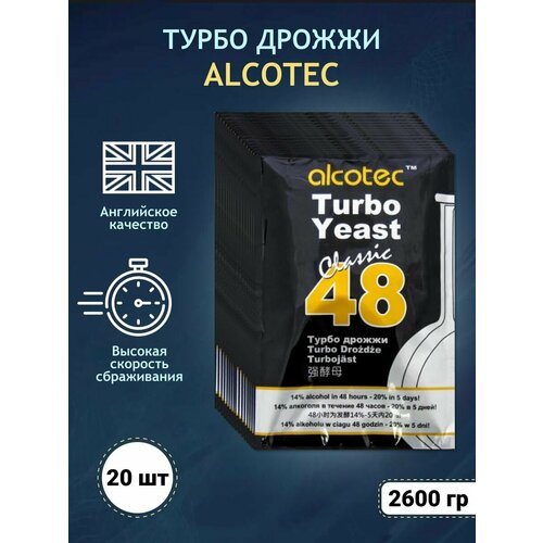 Спиртовые турбо дрожжи Alcotec 48, 20 штук