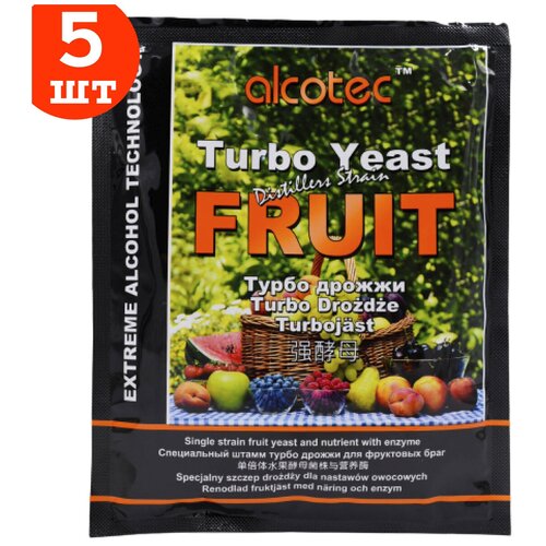 Спиртовые турбо дрожжи для самогона Alcotec Fruit turbo, (5 пачек). Турбо дрожжи для фруктовых браг