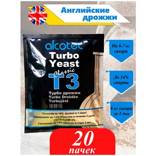 Спиртовые турбо дрожжи Alcotec Turbo T3/ Алкотек Т3 дрожжи для самогона, для браги, для виски/ (комплект из 3 шт)