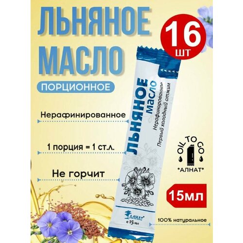 Масло льняное порционное "Алнат", из семян льна, холодного отжима, нерафинированное, 240 мл (15 мл*16 шт)