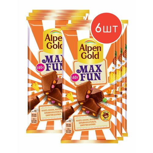 Молочный шоколад Alpen Gold MAX FUN фруктовые кусочки-карамель-шипучие шарики 140г 6шт