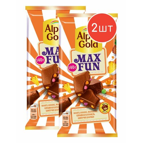 Молочный шоколад Alpen Gold MAX FUN фруктовые кусочки-карамель-шипучие шарики 140г 2шт