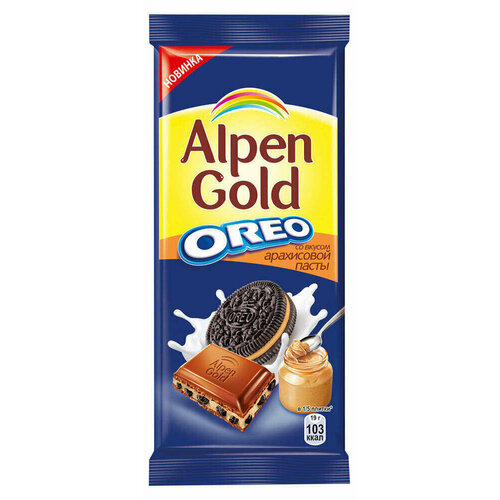 Шоколад Alpen Gold Oreo молочный с арахисовой пастой и кусочками печенья, 95 г, 20 шт