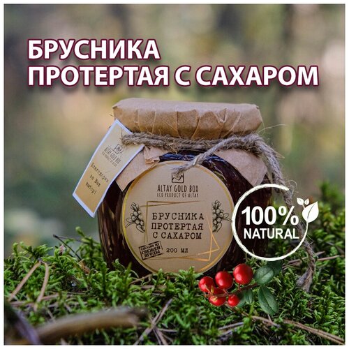 Брусника протертая с сахаром/ лесная дикая ягода/ без термообработки / для иммунитета/ для здоровья/ ПП / натуральные фермерские продукты.