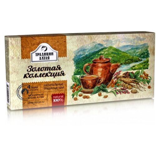 Подарочный набор чая золотая коллекция травяной 4×50г Традиции Алтая 92510