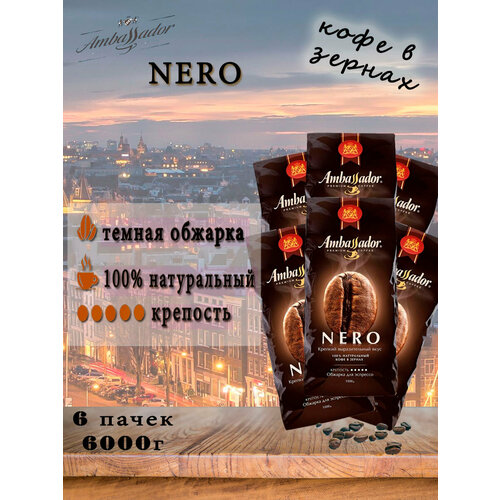 Зерновой кофе AMBASSADOR NERO, картонная коробка, 6 шт / 6 кг