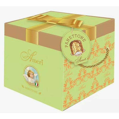 Кулич "Ameri" с изюмом и цукатами в зеленой шляпной коробке 900 г