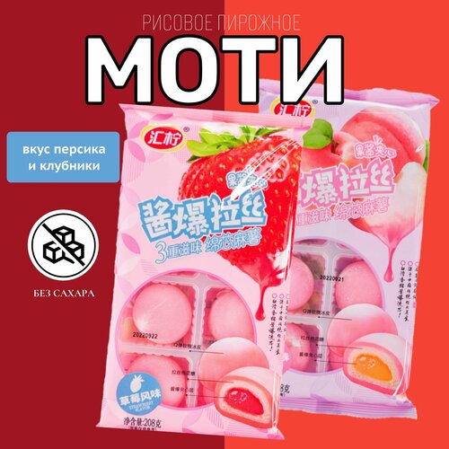 Японские сладости / Пирожное десерт Моти без сахара со вкусом Клубники и маршмеллоу 208 гр. Корейская еда