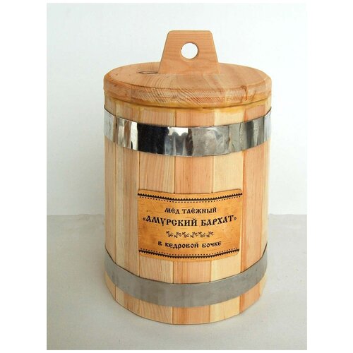 Мёд Амурский Бархат в кедровой бочке весом 5,8 кг