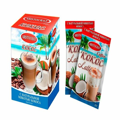 Кофе растворимый ARISTOCRAT LATTE "Кокос", 3 в 1, с натуральной мякотью кокоса, 10 шт