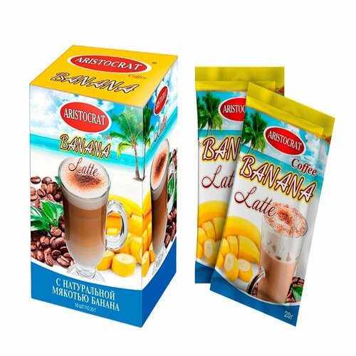 Кофе растворимый ARISTOCRAT LATTE "Банан", 3 в 1, с натуральной мякотью банана, 10 шт