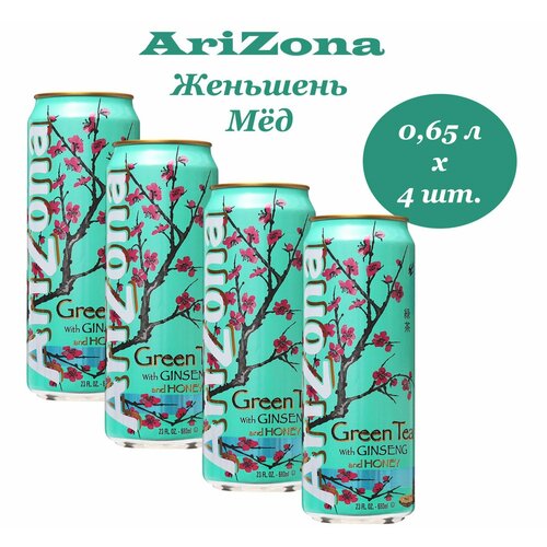 Холодный зеленый чай Arizona (Аризона) Женьшень-Мед 0,65 л х 4 банки