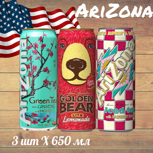 Холодный чай Аризона набор: Жасмин и Мед, Золотой Медведь, Малиновый Чай, 3 шт по 650 мл