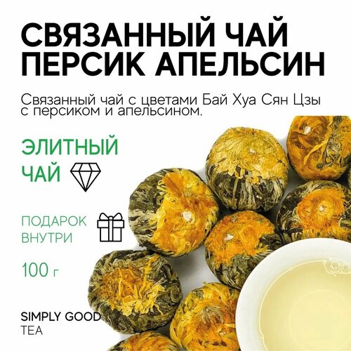 Связанный чай листовой, цветок распускающийся Персик и апельсин, 100 г