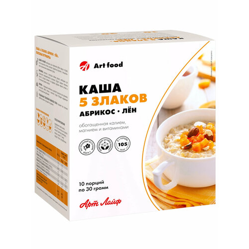 Каша "Пять злаков Абрикос-Лён" Арт Лайф, Без сахара, Обогащена калием и магнием, 10 порций