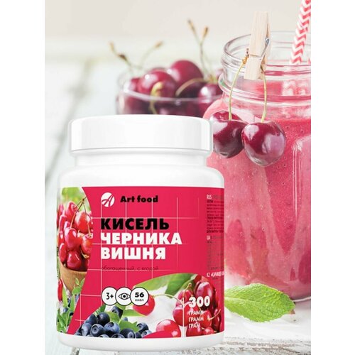 Кисель Арт Лайф Черника-Вишня на натуральном соке с кусочками ягод, обогащен витаминами, рутином и L-таурином, 300 гр.