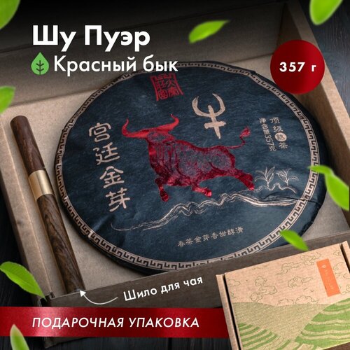 Китайский Чай Шу Пуэр Юн Чжень "Красный Бык" 357 гр. Черный Листовой Чай, Подарочный Бокс+Шило, Art of Tea