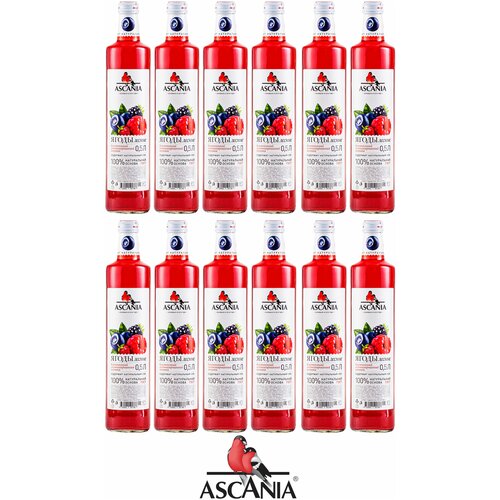Газированный натуральный лимонад Ascania (Аскания), Лесные ягоды, стеклянная бутылка 0,5 литра (500 мл.) — 12 штук