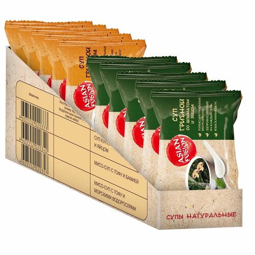 Суп азиатский грибной Asian Fusion, 2 вкуса 12 гр. — шоубокс 10 шт.