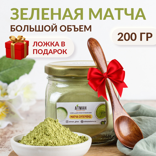 Матча чай зеленый растворимый с добавлением суперфудов, деревянная ложка в подарок, Атман, 200 гр