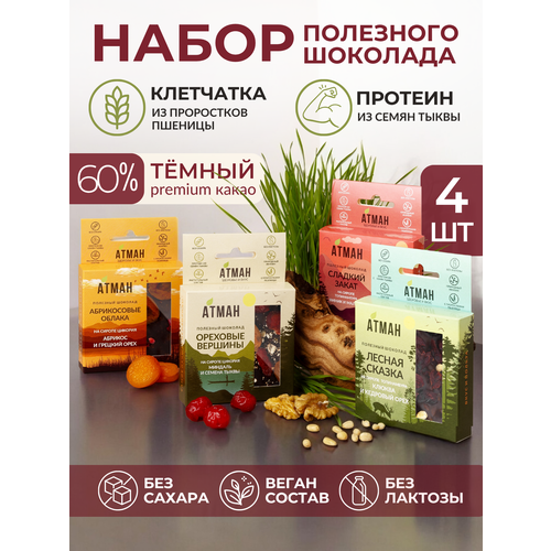 Набор шоколада без сахара с орехами и сухофруктами, подарочный набор шоколада, пп сладости 4 шт.