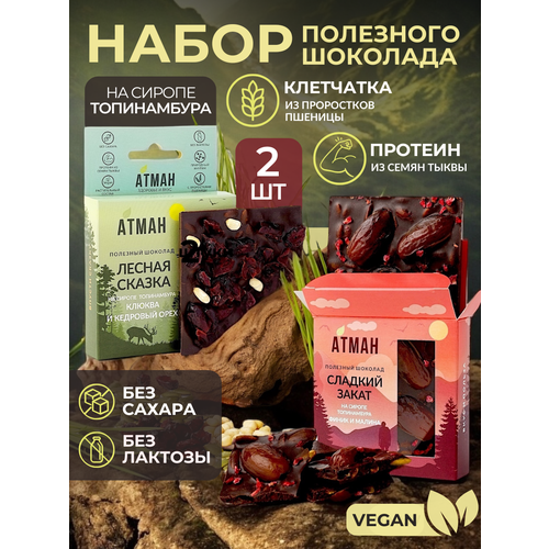 Набор шоколада на топинамбуре финик клюква, 2 шт. с малиной и кедровым орехом ПП шоколад