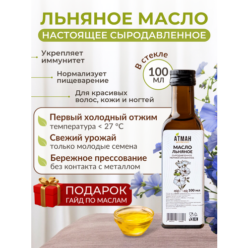 Льняное масло сыродавленное нерафинированное растительное, правильное питание в пост, атман, 100мл