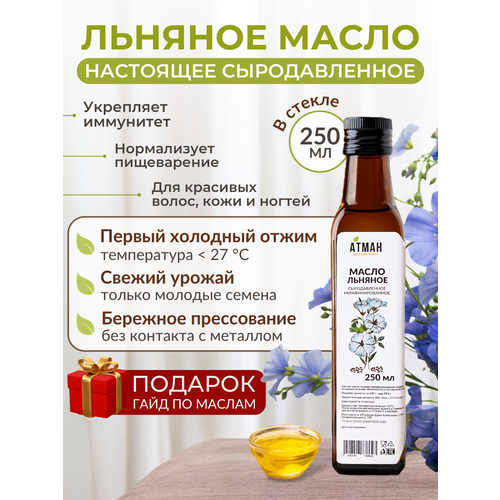 Льняное сыродавленное масло, нерафинированное растительное масло в пост, правильное питание, атман, 250 мл