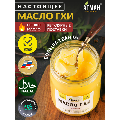 Масло ГХИ АТМАН, классическое, для жарки, натуральное, 99% жирности, 450г