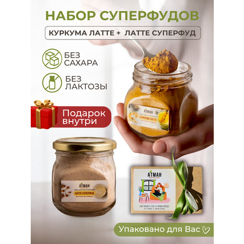 Подарочный набор напитков-суперфудов, куркума латте и растворимый латте суперфуд, без кофеина, веган, 2 шт. по 100 г.