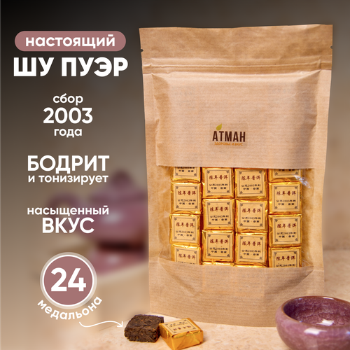 Настоящий Шу Пуэр чай, черный листовой прессованный, медальоны по 6 гр 24 шт, АТМАН