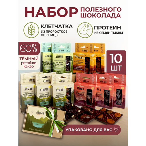 Подарочный набор шоколада без сахара с орехами и сухофруктами, пп сладости диетические, 10 шт.