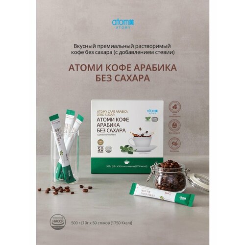 Кофе корейский арабика без сахара 3 в 1 в пакетиках Atomy 50 штук