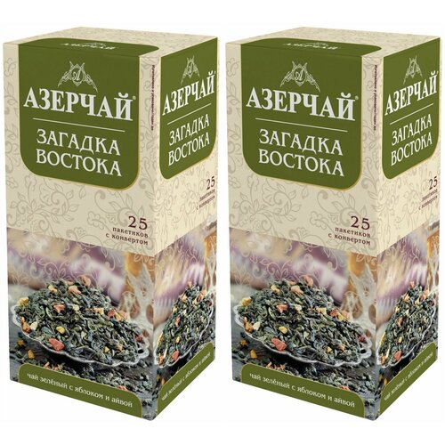 Azercay Зеленый чай Загадка Востока, С яблоком и айвой, 25 пакетиков по 2 г, 2 уп