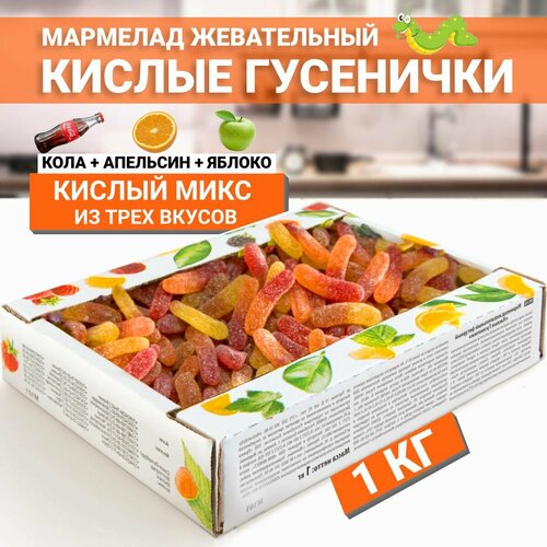 Мармелад жевательный 1кг червячки гусенички кислые микс с натуральным соком