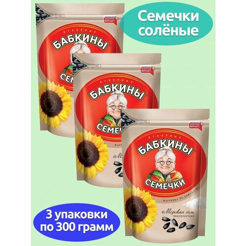 Бабкины семечки, семечки жареные, соленые, 3 упаковки по 300 грамм