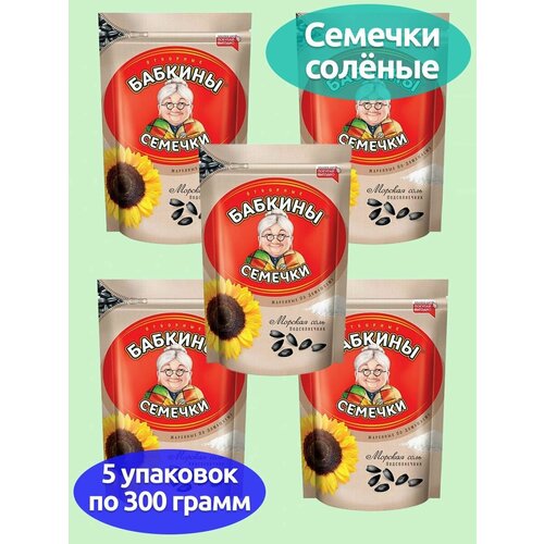Бабкины семечки, семечки жареные, соленые, 5 упаковок по 300 грамм