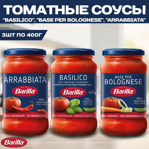 Соус Barilla: "BASILICO", "Base per Bolognese", "ARRABBIATA", 3 штуки по 400 грамм.