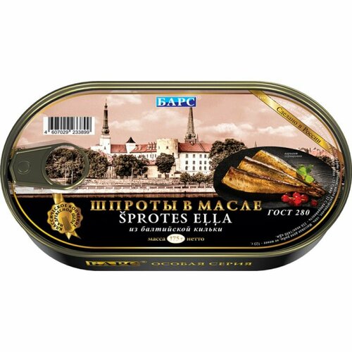 Шпроты Барс, в масле, копченые, 175 гр, высший сорт, 12 штук