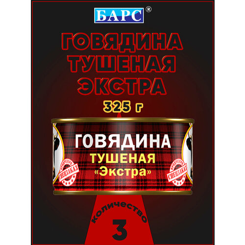 Говядина тушеная экстра, СТО, Барс, 3 шт. по 325 г