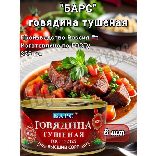 Говядина тушеная экстра, высший сорт, ГОСТ, Барс, 15 шт. по 325 г