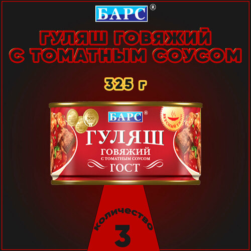 Гуляш говяжий с томатным соусом, ГОСТ, Барс, 3 шт. по 325 г