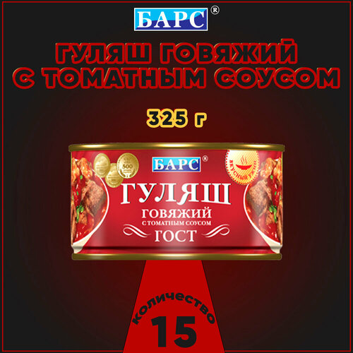Гуляш говяжий с томатным соусом, ГОСТ, Барс, 15 шт. по 325 г