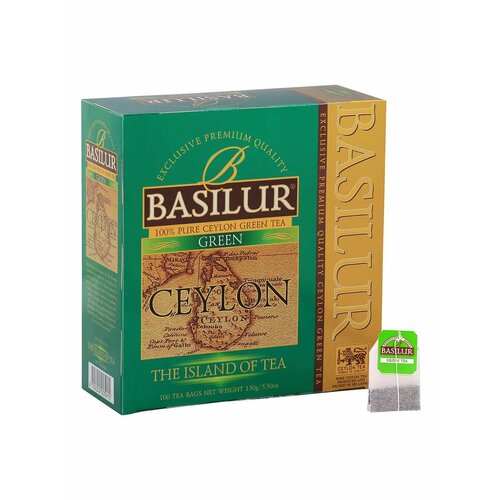 Чай Basilur, зеленый, в пакетиках, цейлонский, мелколистовой, 100 пакетиков