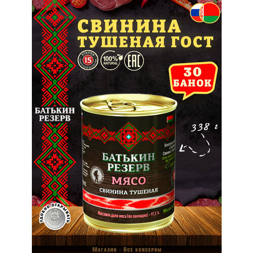 Свинина тушеная, Батькин резерв, ГОСТ, 30 шт. по 338 г
